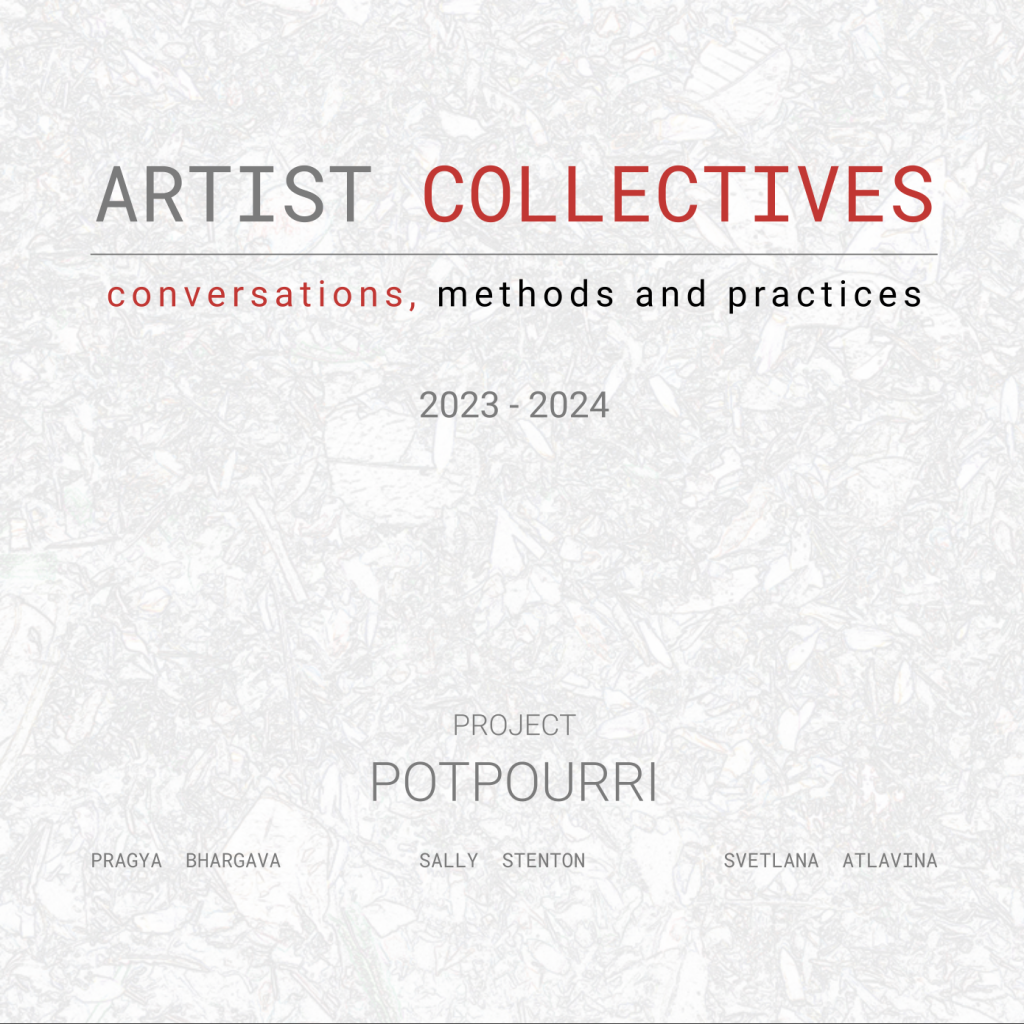 In 2023 Project Potpourri called out into the void to other Collectives to come together to create an online publication. Pragya Bhargava, Svetlana Atlavina and Sally Stenton facilitated the process with support from their parent collective -Experimental Space Collective [esc] and from Dr John Wright, lecturer at Leeds University.