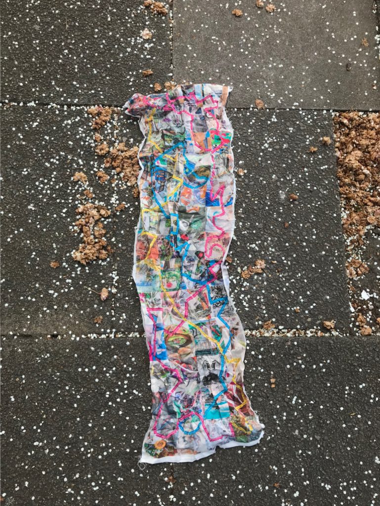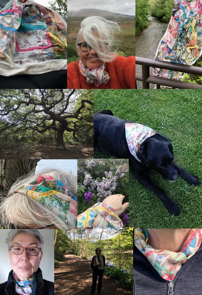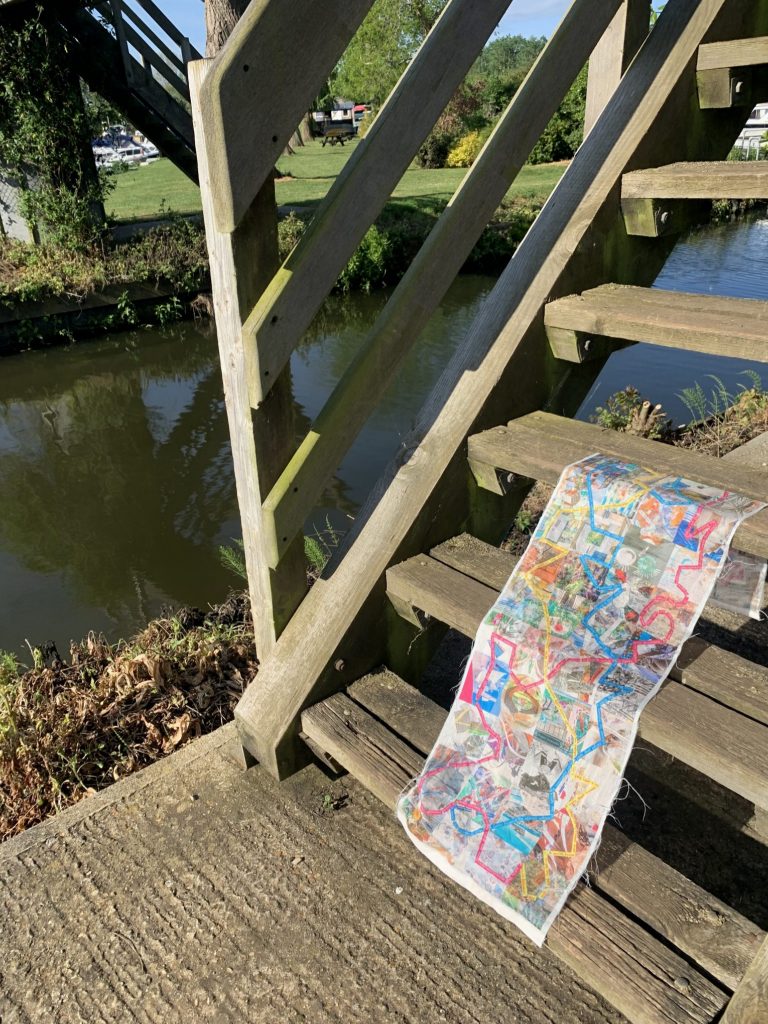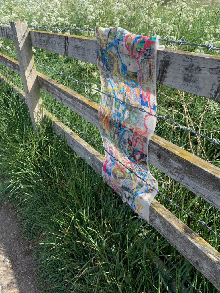 Walks with[out] edges generated 52 collages that fused together experiences of walks in different places across the world. The collages were collaged together and printed onto fabric so that we might carry the collaged walks with us on our walks. For 4 weeks we explored ways of taking the walks for a walk in our own locations.