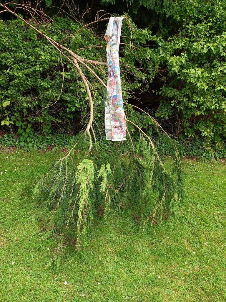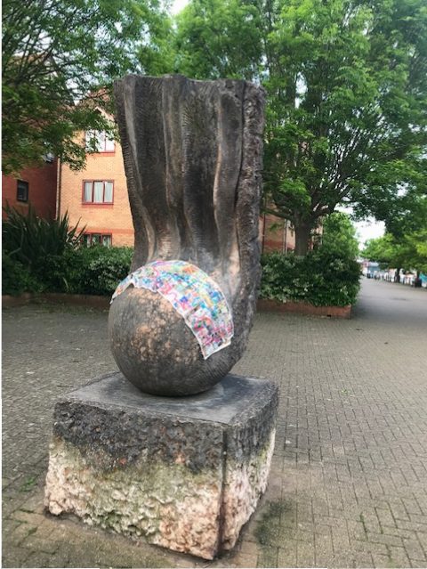 Large linen versions were exhibited at Watford Museum in April 2022 and the silk prints were worn as a Sari by Pragya Bhargava at the exhibition opening and cut into scarves for people to take on a series of walks in May 2022.